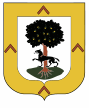 Las armas de su escudo son: Un roble de sinople frutado de oro, con un lobo en sable atravesando el tronco.